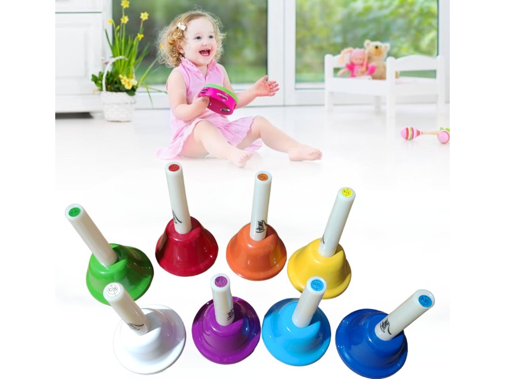 Zvonky s rukojetí V-TONE RR8 jsou skvělým edukačním nástrojem pro děti, který uvádí ty nejmenší do fascinujícího světa hudby. Sada se skládá z osmi zvonků s rukojetí, které pokrývají tóny diatonické stupnice v tónině C dur. Každý zvonek má jinou barvu – od červené po bílou – což nejen usnadňuje učení, ale také činí hru atraktivnější. Díky solidnímu zpracování z ABS plastu a oceli jsou zvonky odolné a rezistentní vůči poškrábání, což z nich dělá ideální volbu pro intenzivní používání dětmi.