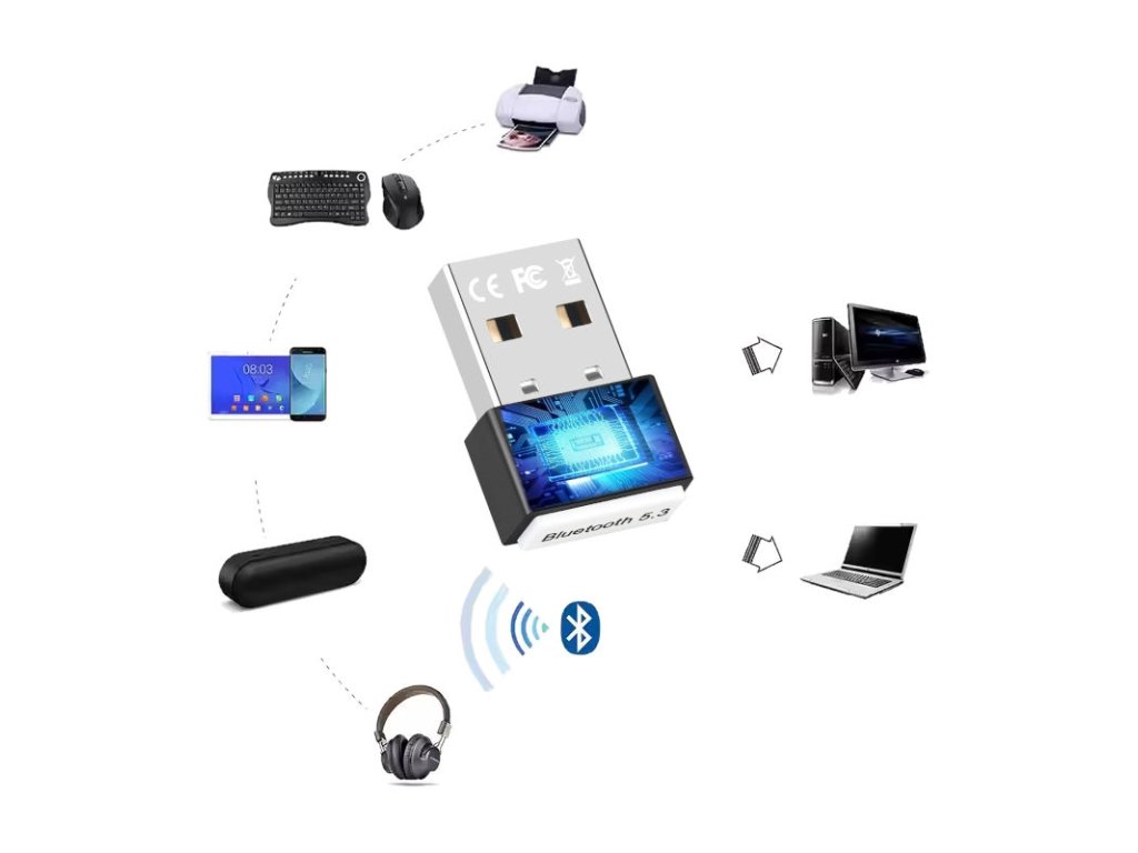 Umožněte svému počítači bezdrátové připojení díky tomuto Bluetooth 5.3 přijímači a vysílači. Stačí jej připojit do USB 2 nebo USB 3 portu a okamžitě získáte možnost připojit až 7 zařízení najednou, včetně klávesnice, myši, bezdrátových sluchátek nebo tiskárny. Je zpětně kompatibilní i se staršími verzemi Bluetooth (od BT 2.0).