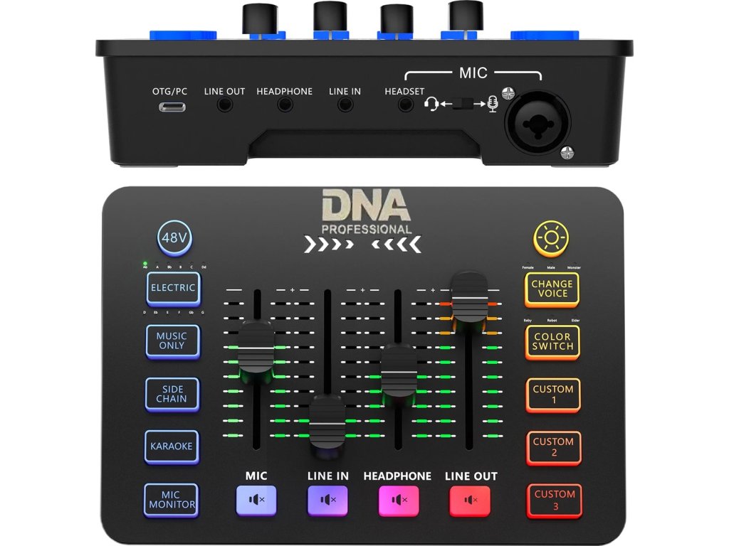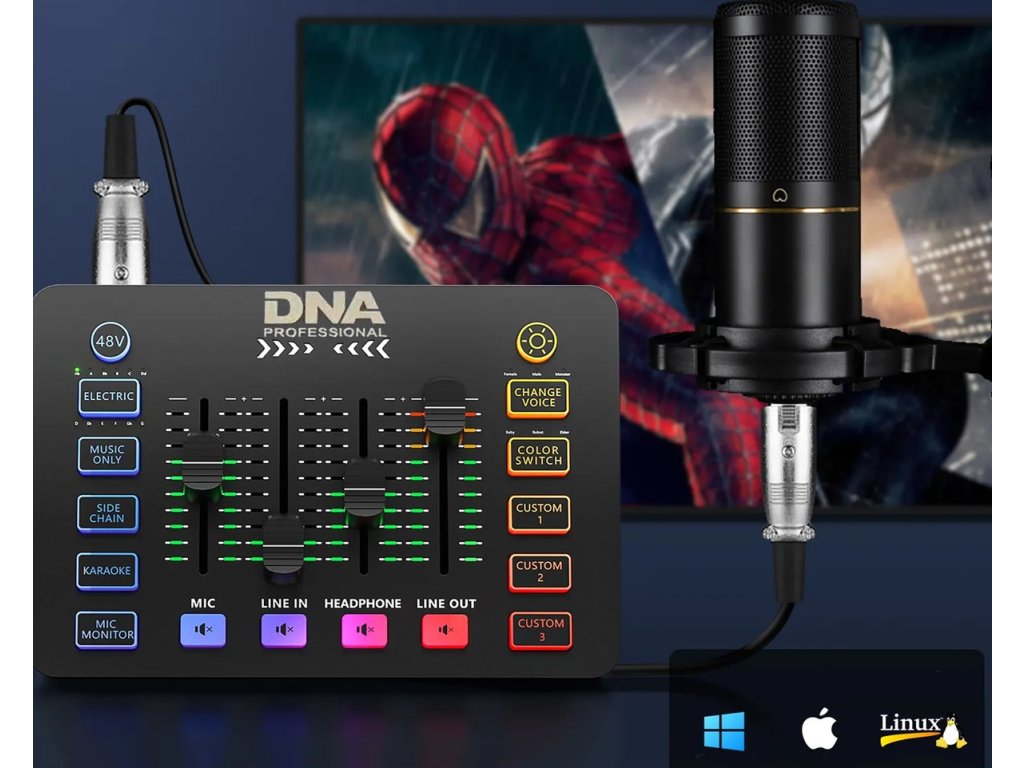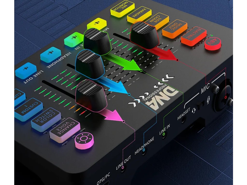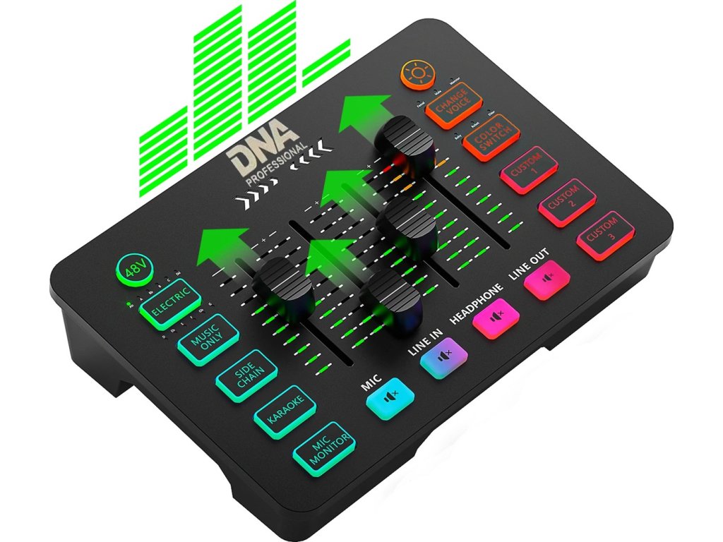 Představujeme vám kompaktní a multifunkční audio mixážní pult DNA SC ONE, který otevírá dveře do světa kreativního zvuku – pro streamery, tvůrce obsahu, pedagogy i hudebníky. Dva kanály, pokročilé zvukové efekty a možnost nahrávání i přehrávání vlastních efektů je vše, co potřebujete, aby vaše nahrávky vyčnívaly z davu. RGB podsvícení a efekt změny hlasu dodají každému záznamu neopakovatelnou atmosféru. Napájení přes port USB-C a plná kompatibilita s Windows, MacOS a Linux zajišťují pohodlné používání a svobodu při práci. Pro domácí studio, živé vysílání, podcasty nebo streaming – DNA SC ONE je váš nový spolehlivý společník.