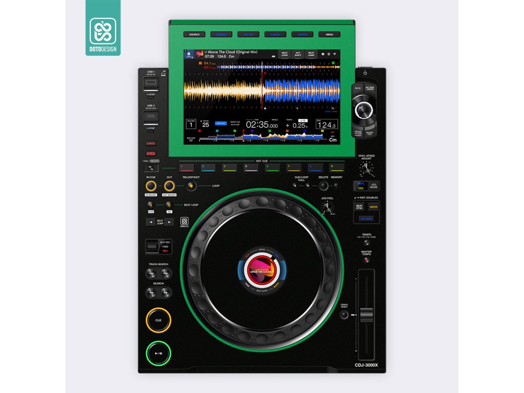 Nalepovací skin pro DJ přehrávač AlphaTheta CDJ-3000X v provedení COLORS DVS, barva green (zelená).
