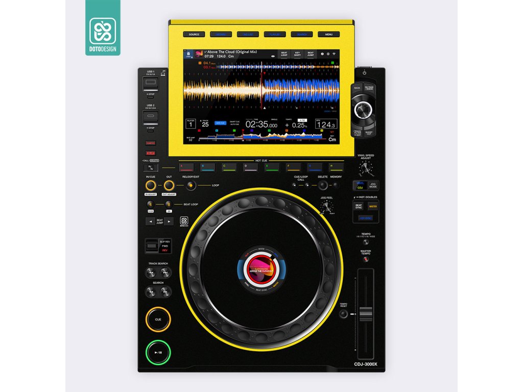 Nalepovací skin pro DJ přehrávač AlphaTheta CDJ-3000X v provedení COLORS DVS, barva yellow (žlutá).