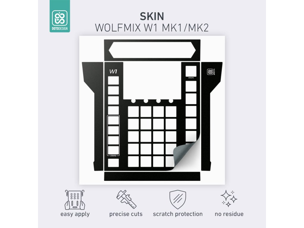 Nalepovací skin pro DMX ovládací pult Wolfmix W1 (MK1 / MK2) v provedení FULL COLORS, barva black (černá).