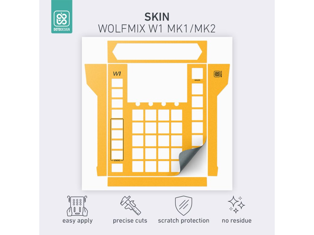 Nalepovací skin pro DMX ovládací pult Wolfmix W1 (MK1 / MK2) v provedení FULL COLORS, barva dark yellow (tmavě žlutá).