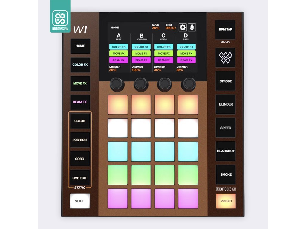 Nalepovací skin pro DMX ovládací pult Wolfmix W1 (MK1 / MK2) v provedení Mash-Up Espresso.