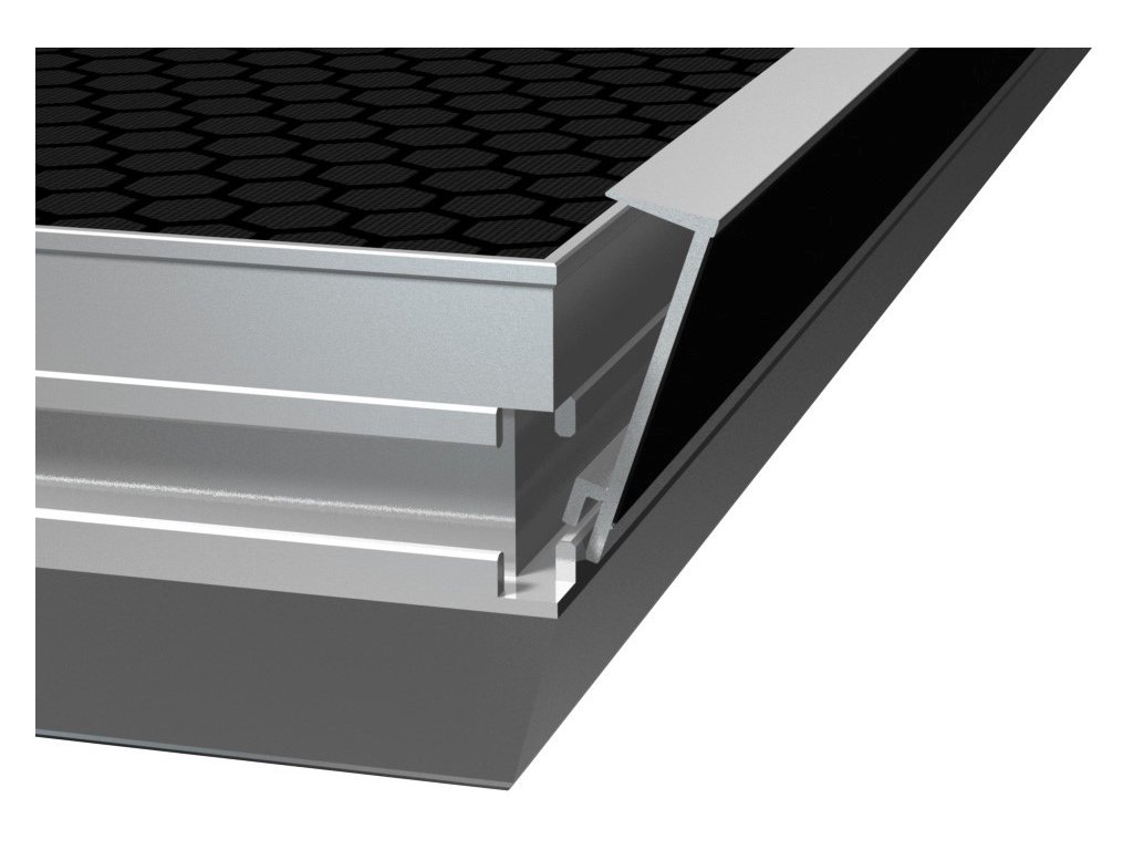 Hliníková lišta pro uchycení krycí plenty k podiovým deskám. Lišta je opatřena suchým zipem.