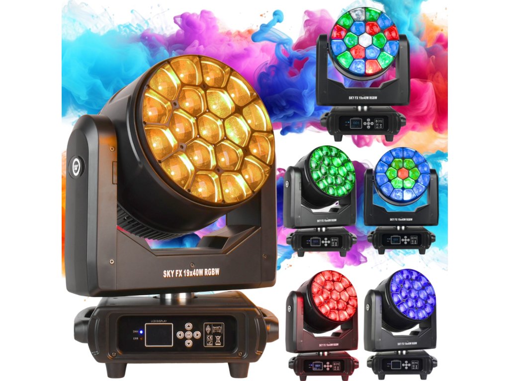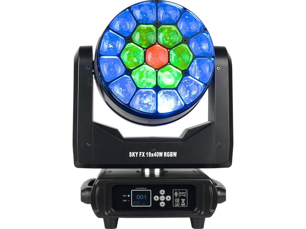 Moderní otočná hlava Light4Me Sky FX 19x40W RGBW – profesionální jevištní LED DMX osvětlení