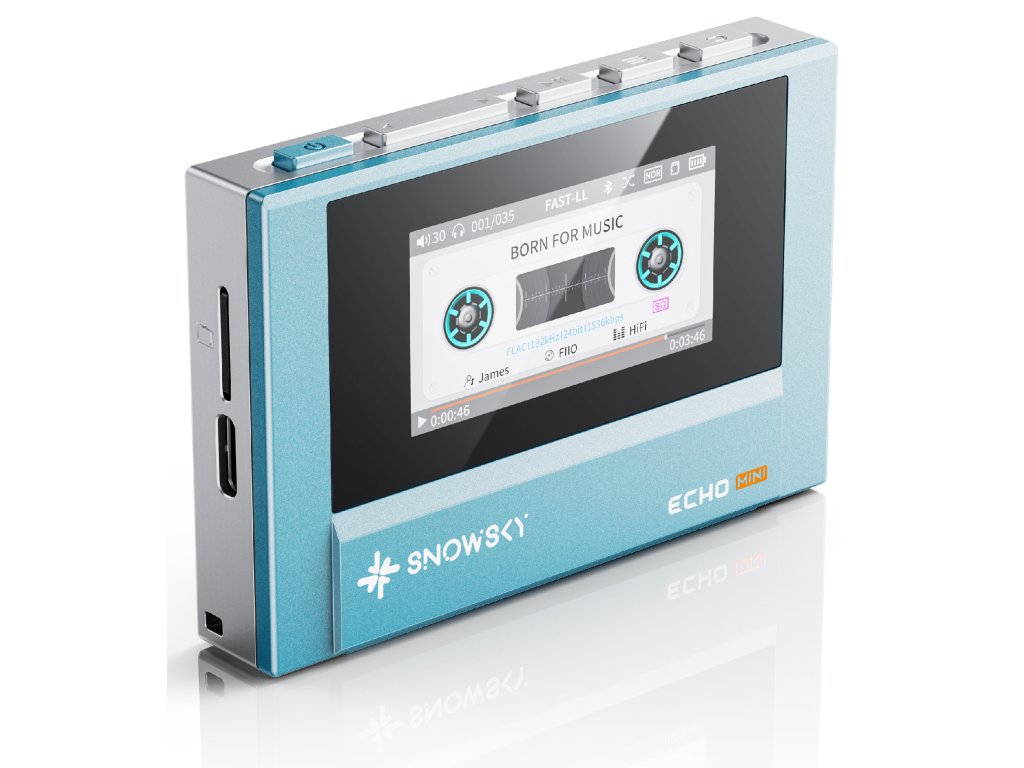 FiiO Echo Mini oživuje vzpomínky na walkmany – na 2ʺ barevném IPS displeji běží animované UI s rotující páskou, takže u každé skladby vidíte „cívky“ v akci. V hliníkovém těle o hmotnosti pouhých 55 g najdete 8 GB interní paměti pro rychlý přístup k oblíbeným albům a slot pro microSD až 256 GB, takže se na cesty vejde celá vaše sbírka. Vestavěná baterie 1100 mAh vydrží přes 15 hodin přehrávání – ideální společník na denní dojíždění i víkendové výlety.