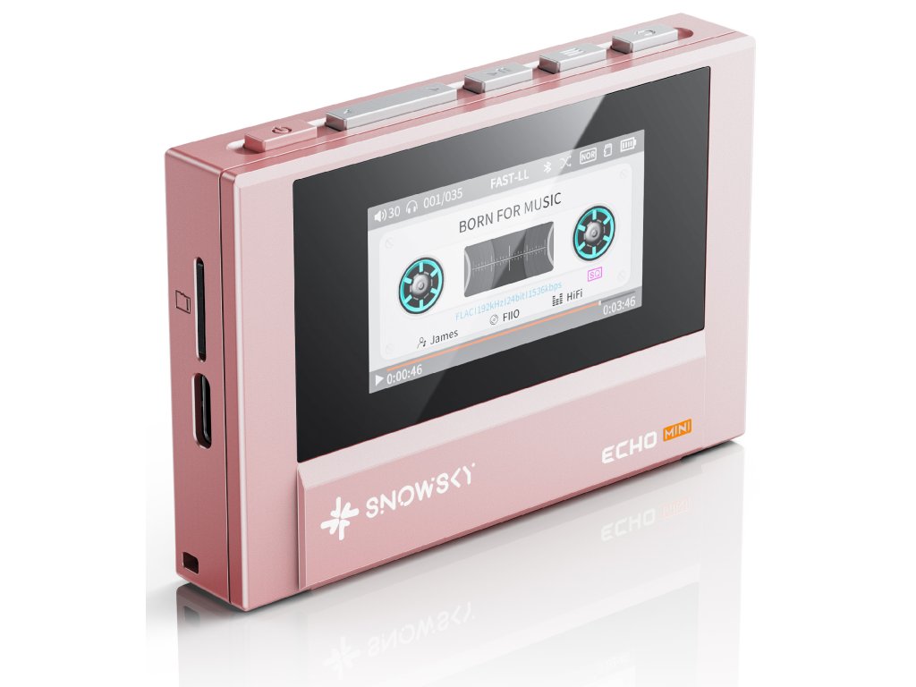 FiiO Echo Mini oživuje vzpomínky na walkmany – na 2ʺ barevném IPS displeji běží animované UI s rotující páskou, takže u každé skladby vidíte „cívky“ v akci. V hliníkovém těle o hmotnosti pouhých 55 g najdete 8 GB interní paměti pro rychlý přístup k oblíbeným albům a slot pro microSD až 256 GB, takže se na cesty vejde celá vaše sbírka. Vestavěná baterie 1100 mAh vydrží přes 15 hodin přehrávání – ideální společník na denní dojíždění i víkendové výlety.