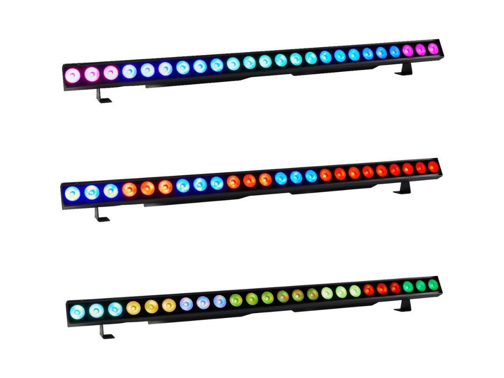 Light4Me Spectra Cree Bar 24x6W RGBWA-UV je profesionální LED lišta pro světelné dekorace a tvorbu pódiových efektů, vyrobená z těch nejlepších materiálů. Díky systému 24 diod RGBWA-UV (červená / zelená / modrá / bílá / jantarová / ultrafialová) SMD Cree LED o výkonu 6 W každá, rozdělených do 8 sekcí, poskytuje LED bar silné světlo a neuvěřitelně širokou paletu barev, které umožňují vytvářet velkolepé světelné efekty. Úhel vyzařování Spectra Cree Bar činí 35°, což zajišťuje rozptýlené a rovnoměrné osvětlení bez ostrých stínů a bodových odlesků. Osvětlovací lišta se ideálně hodí jako osvětlení pro koncerty, estrádní vystoupení, do svatebních síní, tanečních klubů a na diskotéky, stejně jako do pubů, hotelů, restaurací nebo jako osvětlení pro DJ, kapely a eventové firmy.