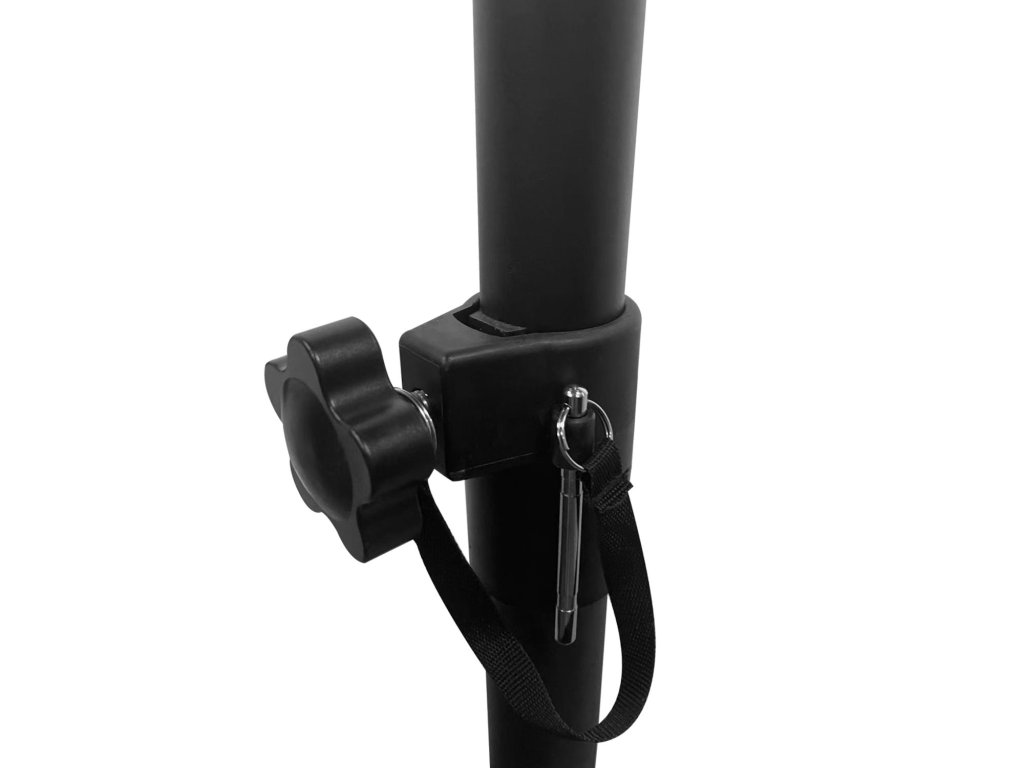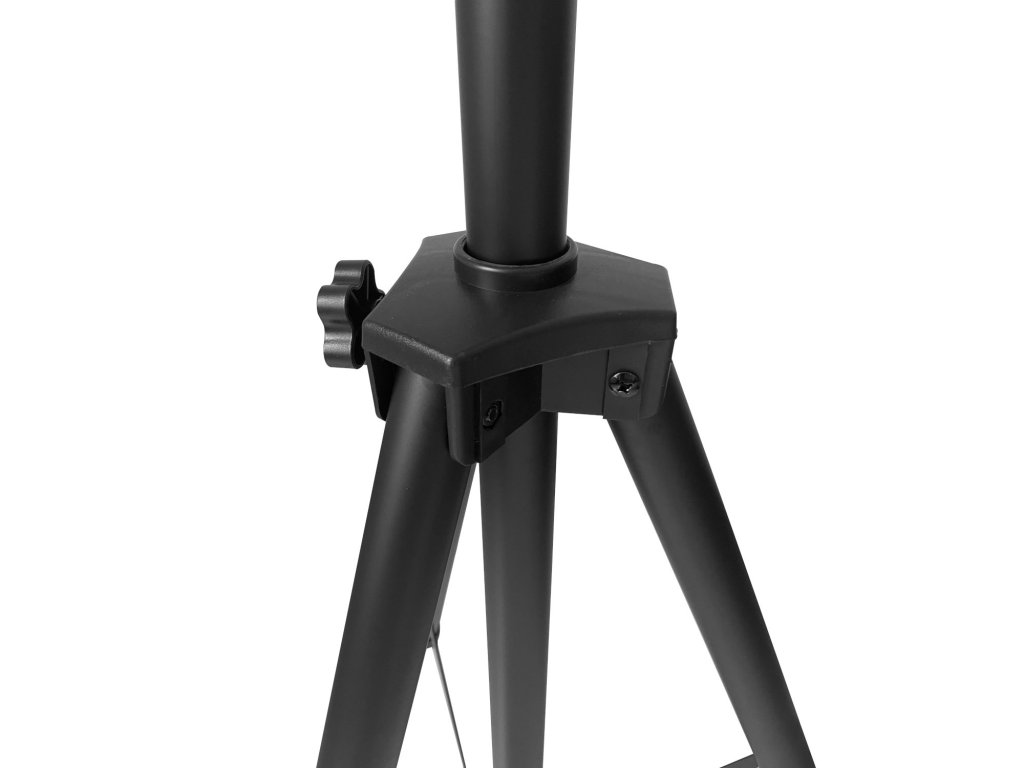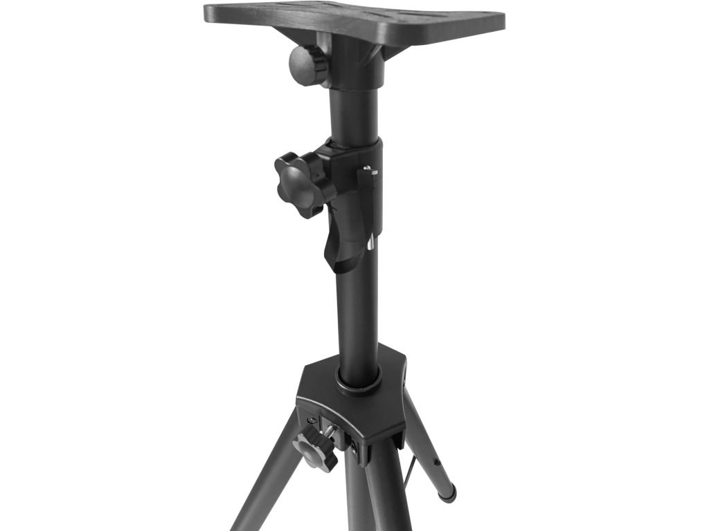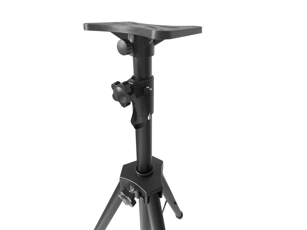 Sloupový stojan Mozos SPK1 je ideálním řešením pro bezpečné a stabilní umístění pódiových reproduktorů, studiových monitorů a další zvukové techniky. Jeho profesionální konstrukce je postavena na osvědčené tripod základně s nosnými trubkami o průměru 3,5 cm a 3,8 cm, což zaručuje vynikající vyvážení a minimalizuje riziko převrácení.