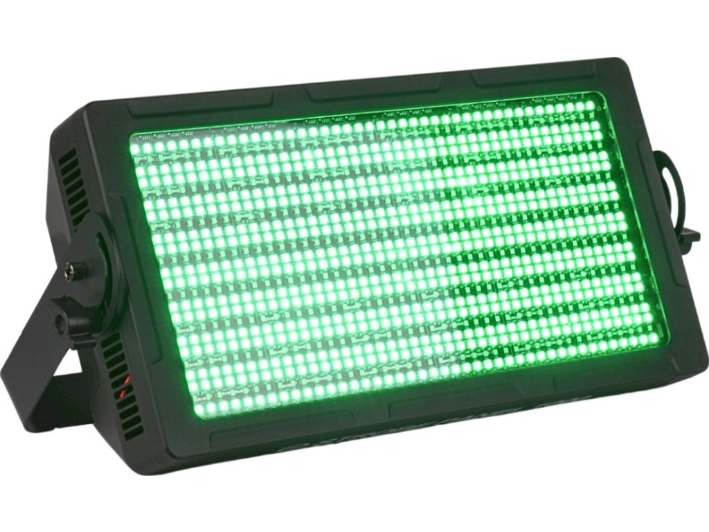 Light4Me Strobe Panel 1000 je výkonný LED stroboskop, který se skvěle hodí na pódia, do klubů, na koncerty a eventy. Díky 1008 LED diodám (672x0,2W RGB - červená, zelená, modrá - SMD5050 + 336x0,5W CW - studená bílá o barevné teplotě 6000K - SMD2835) ve 48 sekcích zajišťuje intenzivní světelné efekty, které obohatí každou párty. Nastavitelná pracovní frekvence (0-30 Hz) a různé možnosti ovládání (automatický provoz, prostřednictvím protokolu DMX nebo manuálně) umožňují plnou kontrolu nad efekty. Light4Me Strobe Panel 1000 je zařízení, které vyniká vysokou světelnou účinností (145 lm/W), silným světelným tokem (7296 lm), skvělým indexem podání barev (85) a širokým úhlem vyzařování (120°), díky čemuž se osvědčí všude tam, kde je potřeba spektakulární scénické osvětlení.