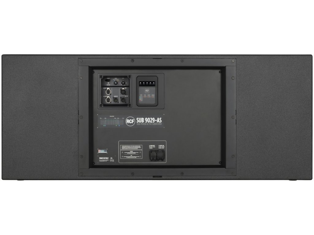 SUB 9029-AS je vysoce výkonný duální 19" aktivní subwoofer s maximálním SPL až 142 dB, poháněný robustním zesilovačem Class-D o výkonu 8000 W (Peak). SUB 9029-AS je navržen pro náročné turné a je vybaven tour-ready skříní, odolnou proti povětrnostním vlivům, s odolným polyurea povrchem. Pro snadnou přepravu lze dokoupit odnímatelný přepravní vozík Front Cart. Ovládání je přesné díky síťové správě RDNet, která nabízí nastavitelný ekvalizér, zpoždění, kardioidní možnosti a na míru vytvořené předvolby crossoveru pro reproduktory RCF. Inovativní bezkontaktní konfigurace přes RDTap umožňuje bezproblémové nastavení i když je jednotka vypnutá, což zajišťuje vždy dokonalou integraci. Navzdory malým rozměrům a lehké skříni produkuje SUB 9029-AS silné, ale zároveň jasné basy, které zůstávají věrné i těm nejjemnějším variacím nízkých frekvencí.