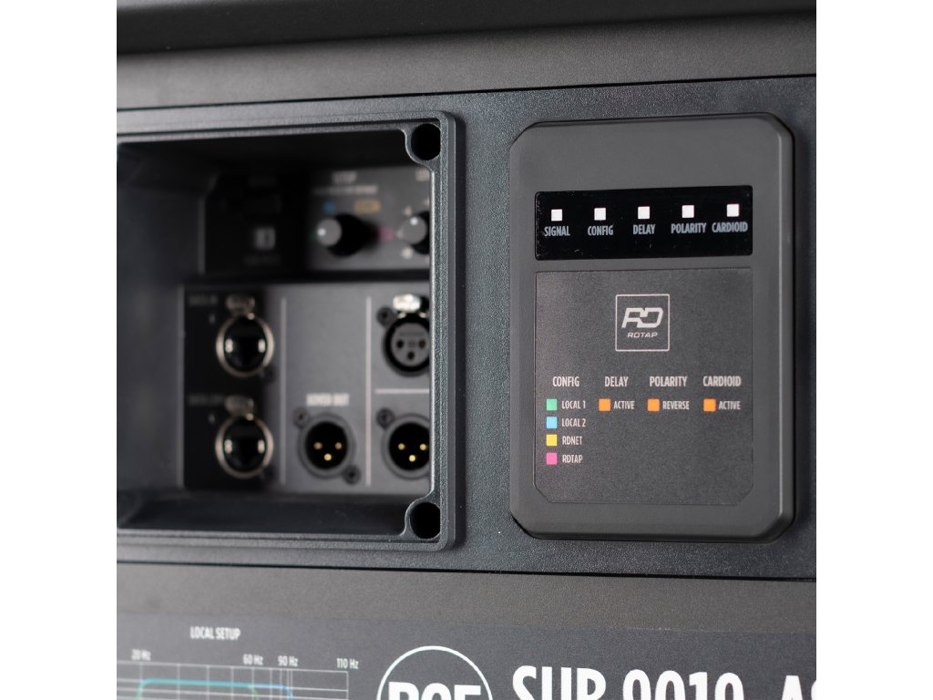 RDTap umožňuje bezkontaktní komunikaci a nabízí správu nastavení a aktualizace parametrů, i když je jednotka vypnutá. Klepnutím na logo RDTap na zadním panelu pomocí smartphonu s aplikací RDTap se do jednotky přenesou všechny aspekty definovaného nastavení, včetně přednastavených konfigurací, ekvalizace, kompenzace středních a nízkých frekvencí pro line array a přesných nastavení zpoždění a časového vyrovnání. Můžete také zobrazit stav reproduktoru. To je obzvláště výhodné při upgradu subwooferů a oživení starého hlavního systému pomocí presetů, ekvalizérů, zpoždění a správy přes RDNet.