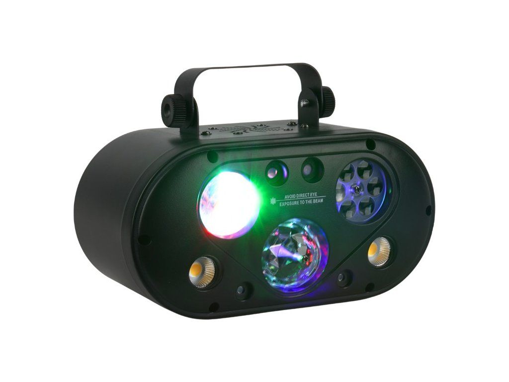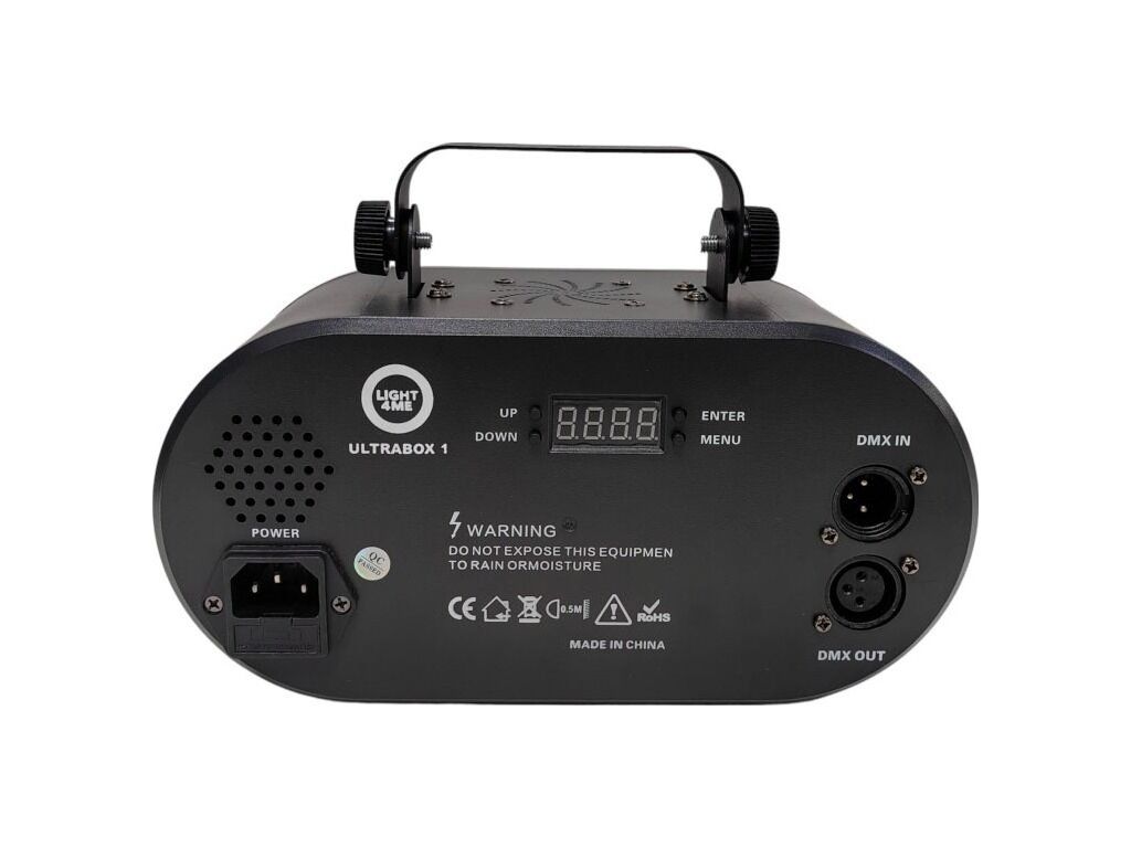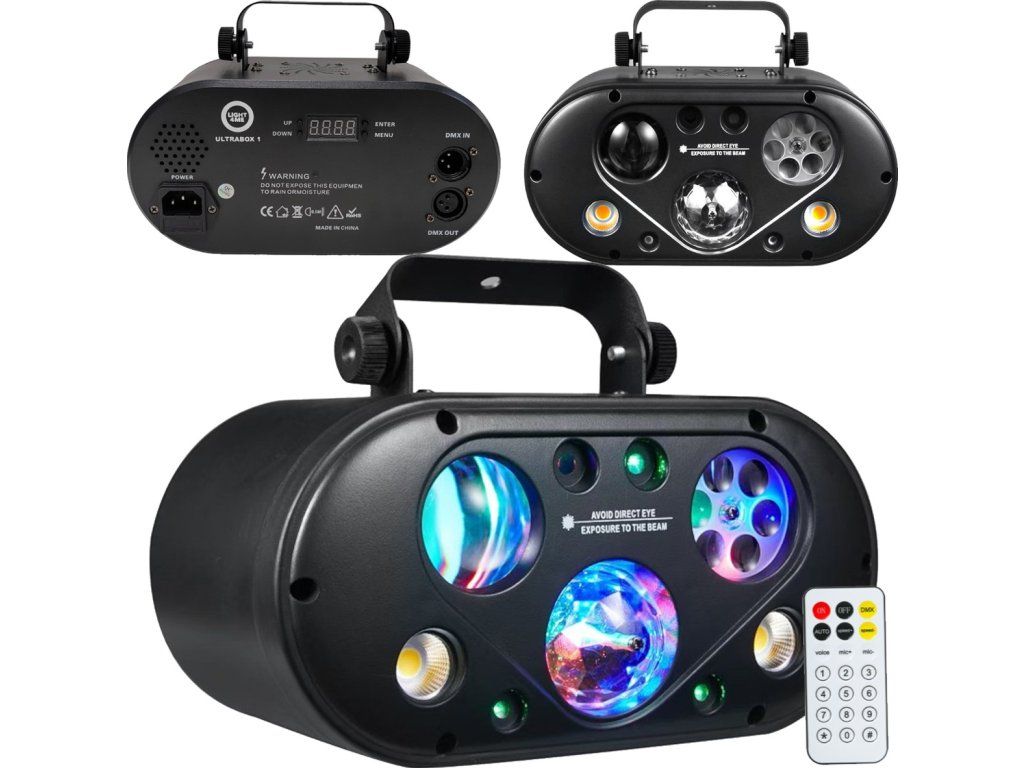 Light4Me Ultrabox 1 je vysoce kvalitní světelný multiefekt LED RGBA, který se ideálně hodí pro obohacení vizuální stránky party, akce nebo události. Díky výkonnému světelnému zdroji skládajícímu se z devíti LED diod RGB o výkonu 3 watty každá (efekty Gobo, Magic Ball a Water Wave), červenému laseru (100 mW), zelenému laseru (50 mW) a dvěma LED diodám amber o výkonu 5 wattů každá (efekt Golden Strobe), nabízí jasné, poutavé vizuální efekty, které uspokojí potřeby nejnáročnějších uživatelů. Nízká spotřeba energie činí zařízení energeticky úsporným, což je významným přínosem během dlouhotrvajících akcí.
