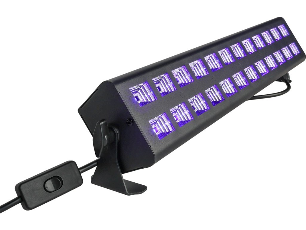 - Typ zařízení: UV LED světelný efekt s montážními držáky- Zdroj světla: 24x3W UV LED (2 řady po 12 diodách)