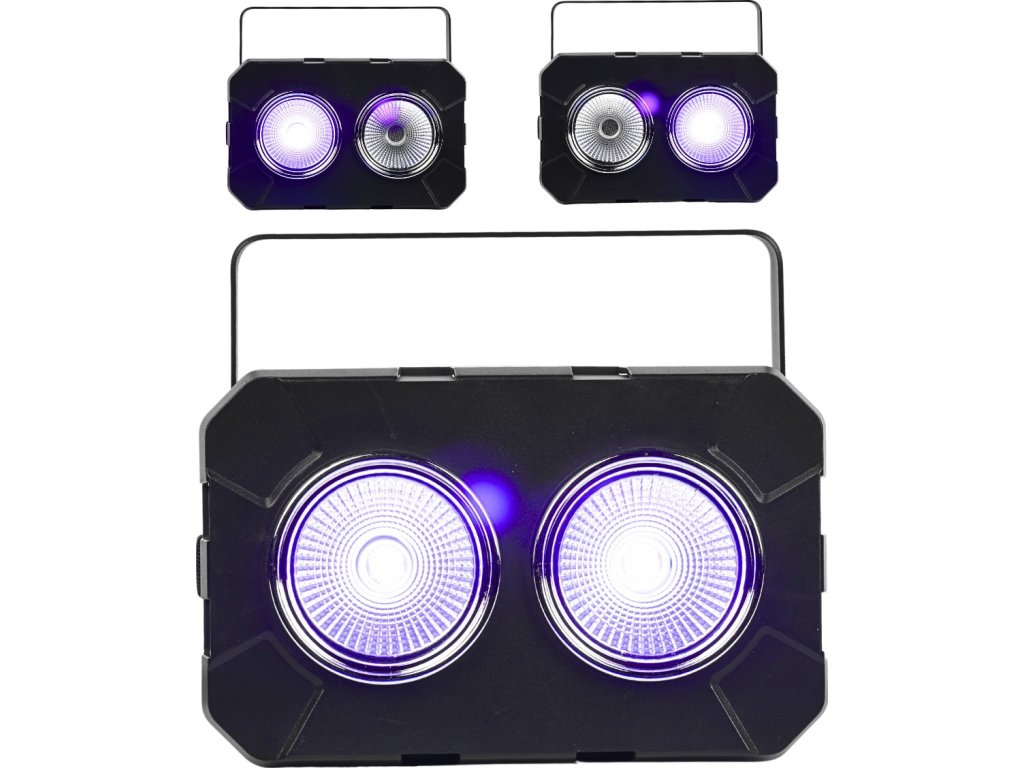 - Typ zařízení: pódiový UV COB LED blinder s reflektorovými odražeči a montážním držákem- Světelný zdroj: 2x50W UV COB LED