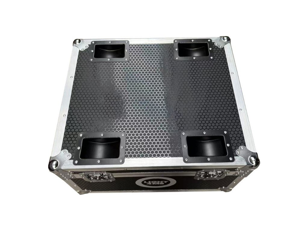 Light4Me Venom Strobe Head Case 4in1 je profesionální a velmi solidně zpracovaný přepravní kufr pro čtyři pódiové stroboskopy Venom Strobe Head nebo jiná zařízení podobných rozměrů. Case byl vyroben ze silné, 7milimetrové překližky natřené speciální voděodolnou barvou. Jeho hrany jsou vyztuženy hliníkovými profily. Na rozích se nacházejí kulové chromované kryty, které dodatečně zpevňují konstrukci a chrání okolí kufru díky eliminaci ostrých hran.