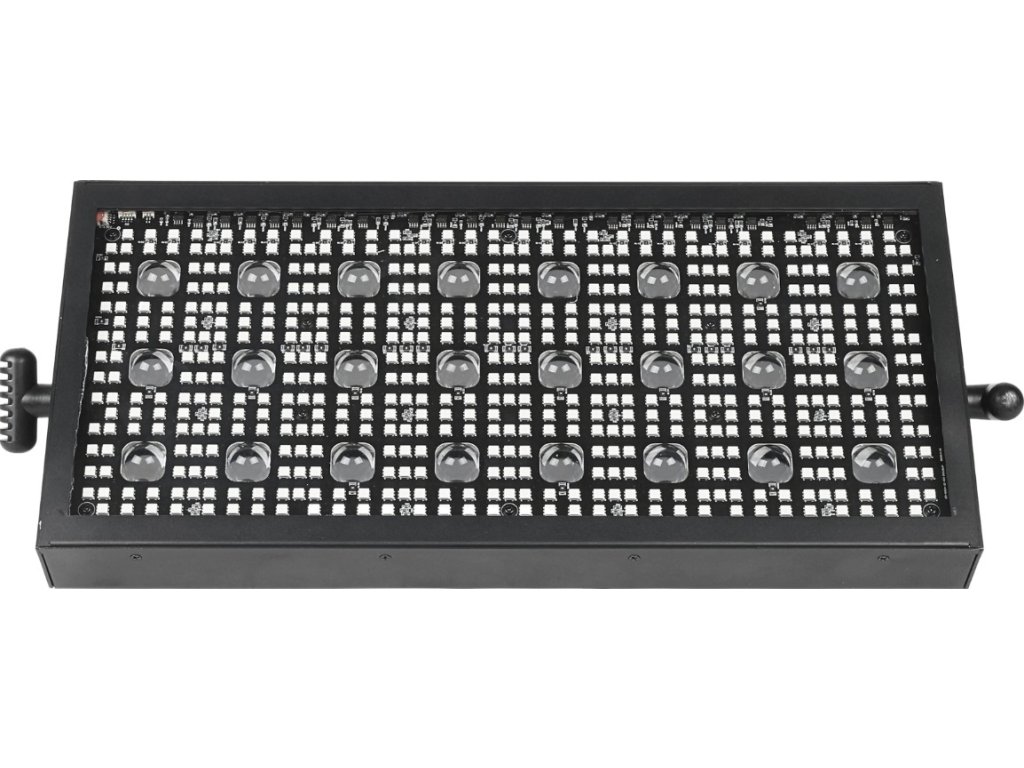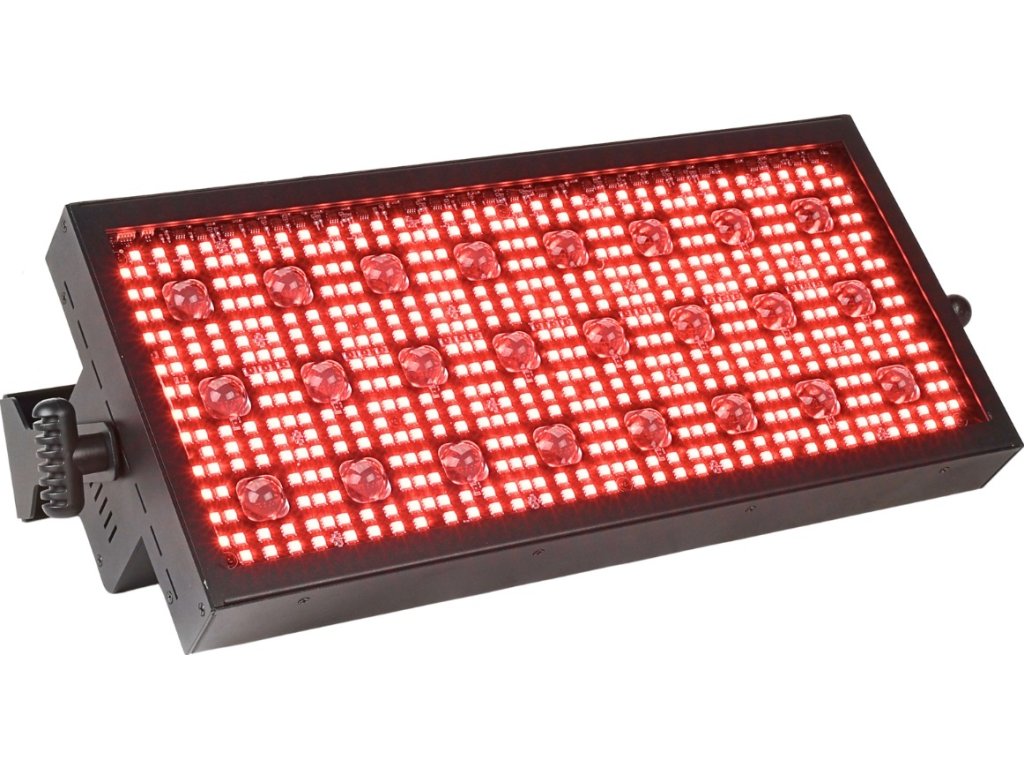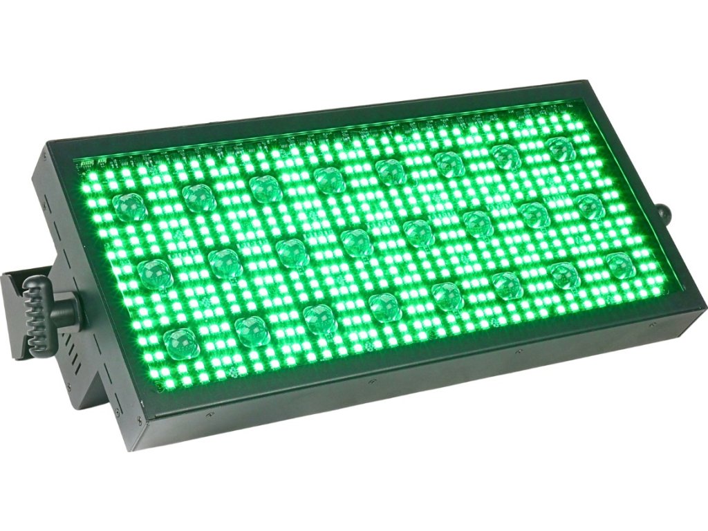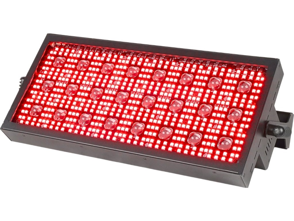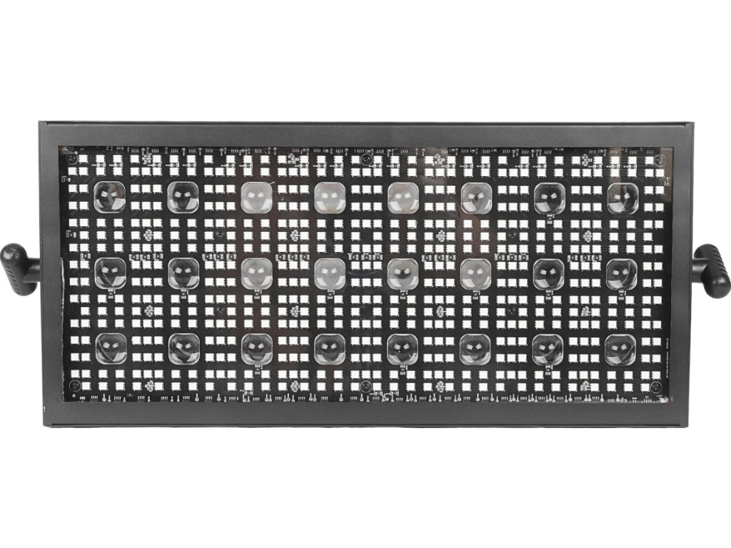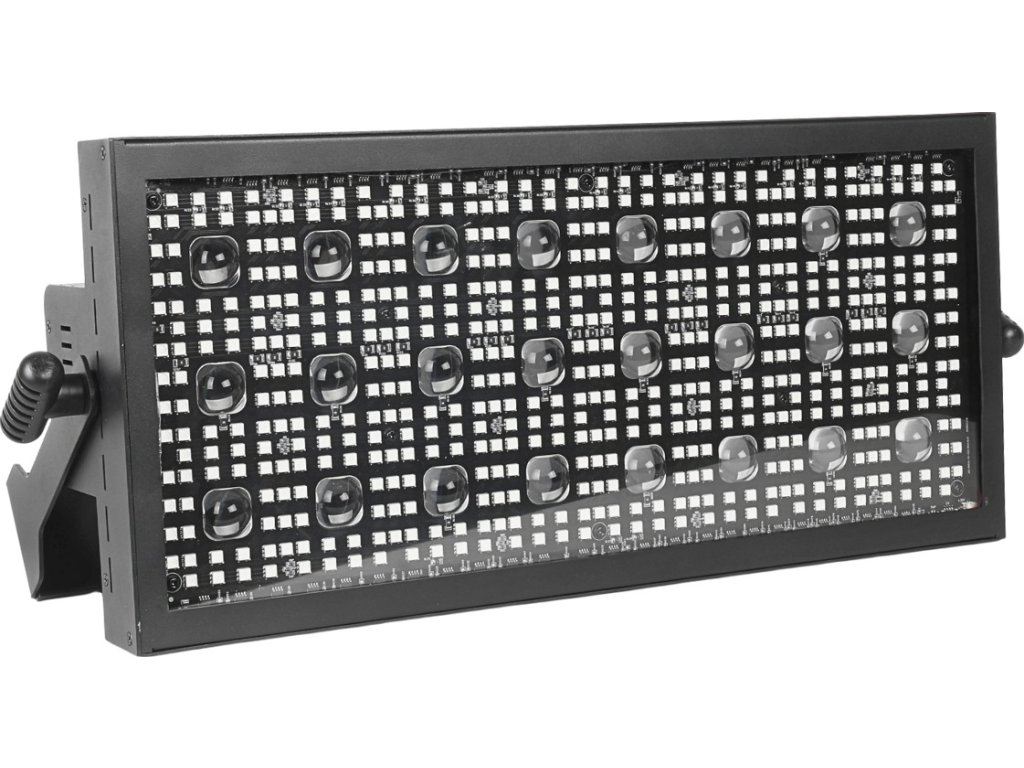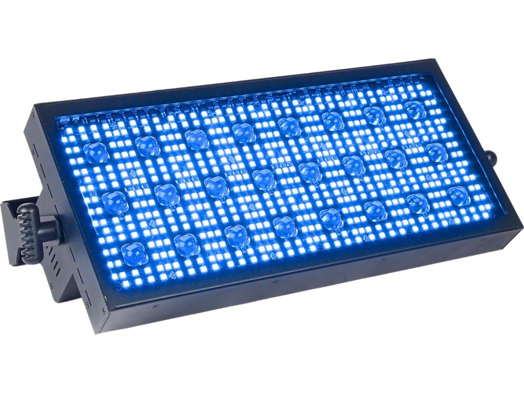- Typ zařízení: pódiový LED DMX stroboskop s montážním držákem- Světelný zdroj: 524x0,3W RGB SMD 5050 LED 3v1 + 24x3W WW LED