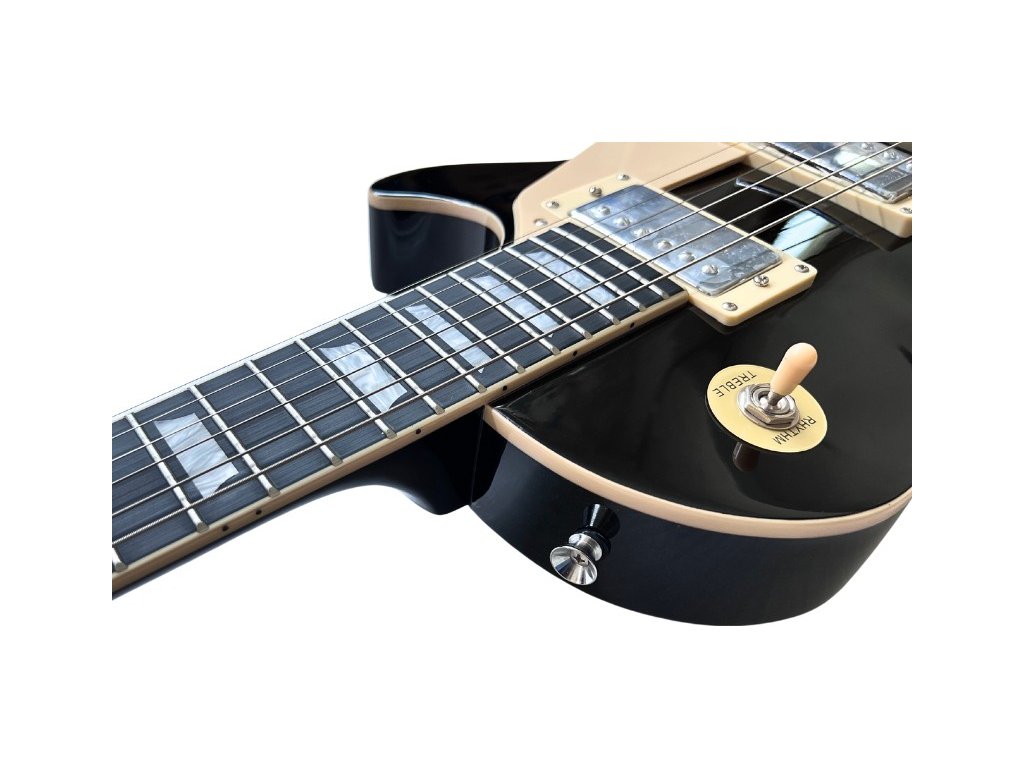 V-TONE VLP1 BK je vynikající volbou pro hudebníky vystupující na pódiu i pro ty, kteří pracují v nahrávacím studiu. Díky použití pasivních snímačů typu humbucker v osazení H-H nabízí kytara široký tonální rozsah, který se skvěle uplatní v různých hudebních stylech, od blues až po rock. Obousměrná torzní tyč umožňuje přesné nastavení pnutí krku, což je klíčové pro pohodlí při hře a čistotu zvuku. Kytara je vybavena menzurou 628 mm a 22 pražci, což rozšiřuje hudební možnosti a umožňuje plný umělecký výraz. Chromované ladicí mechaniky typu Die-cast zajišťují stabilitu ladění, což je klíčové během intenzivních živých vystoupení. Dvě chromované rolny na popruh umožňují plnou svobodu pohybu při hře.
