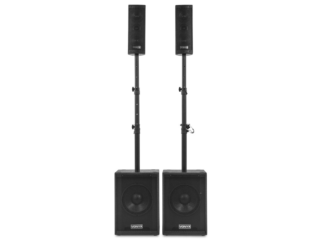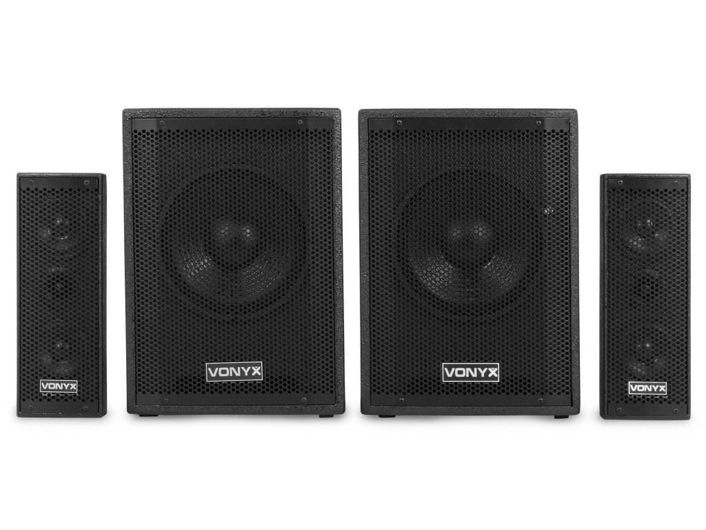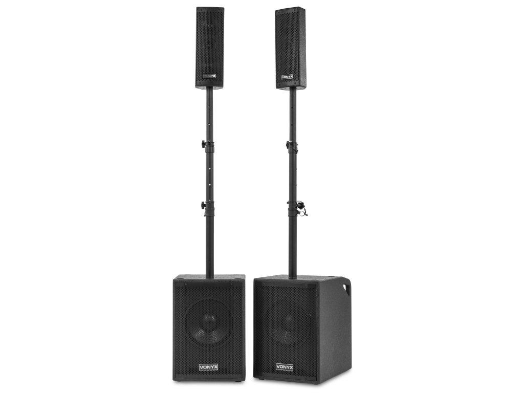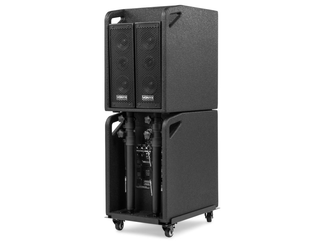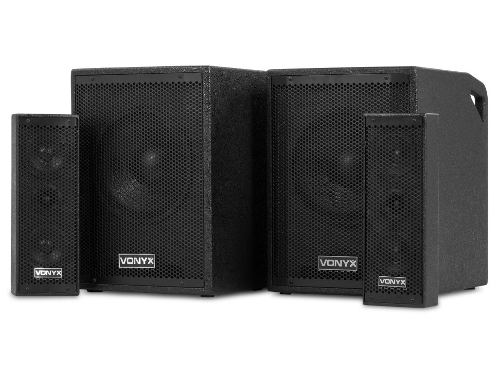 VX1020BT je kompletní reproduktorová sada typu plug & play. Vše, co potřebujete ke spuštění, je součástí balení. V jednom 10" subwooferu je vestavěn zesilovač, který napájí celý systém. Horní reproduktory i pasivní subwoofer jsou připojeny k jednotce se zesilovačem. Vestavěný přijímač Bluetooth vám umožňuje snadno streamovat hudbu bezdrátově ze smartphonu nebo můžete použít vestavěný MP3 přehrávač se sloty USB a SD.