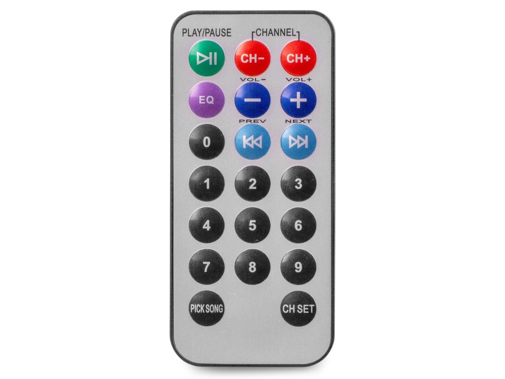 - Příslušenství v balení: 2x distanční tyč, drátový mikrofon, dálkový ovladač, reproduktorové kabely, napájecí kabel, obal, přepravní vozík