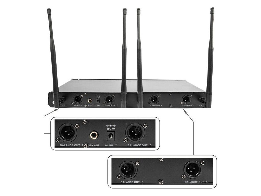 UHF přijímač sady WMIC4 disponuje 2 výstupními kanály XLR (A a B) a výstupem jack 1/4". Na přední straně se nachází ovládací panel pro obsluhu jednotlivých mikrofonů. S jeho pomocí můžeme zařízení spárovat vysláním příslušné frekvence do vysílače přes infračervený port. Mikrofony jsou poté připraveny k práci a prostřednictvím přijímače můžeme ovládat jejich hlasitost a funkce kanálů. Široký frekvenční rozsah a vysoká rychlost přenosu dat umožňují provoz mikrofonů bez rušení.