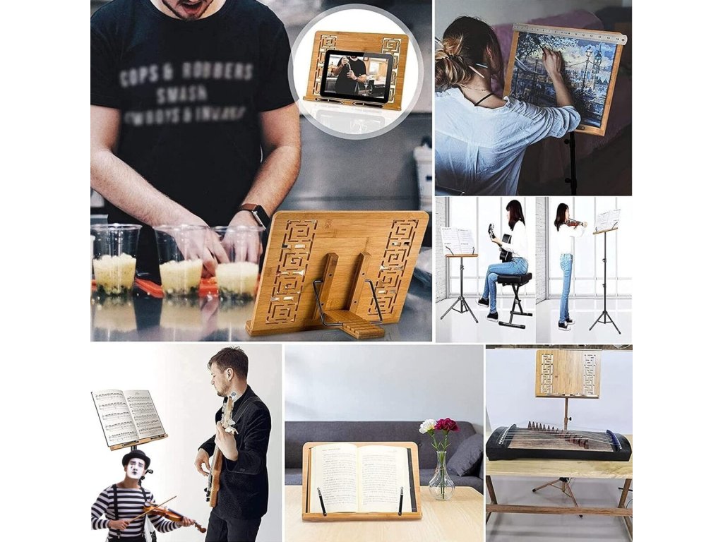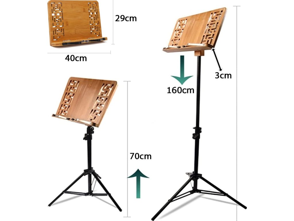 - Typ: dřevěný notový stojan na stativu- Materiál desky na noty: bambusové dřevo